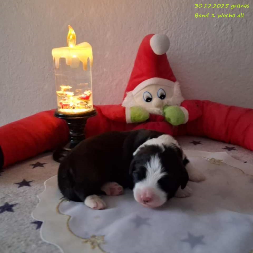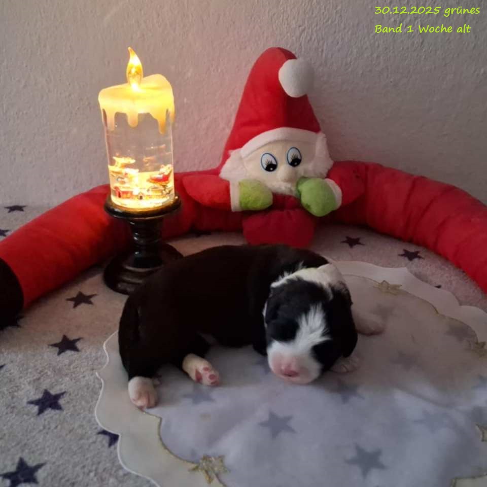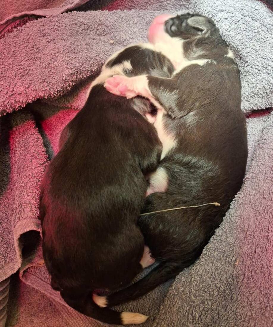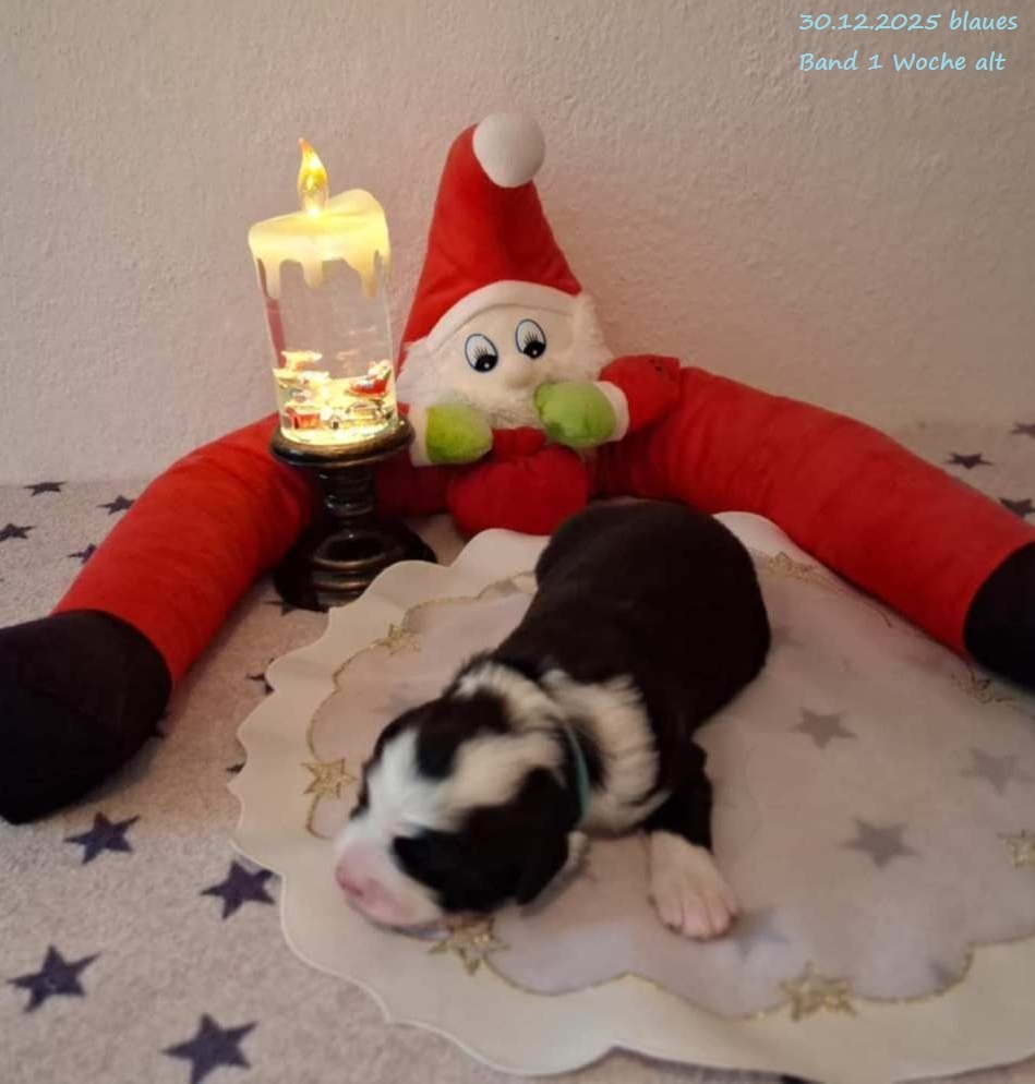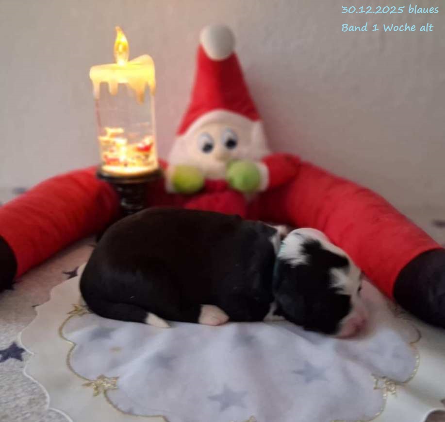 Leider gab es bei der Geburt Komplikationen und um das Leben von Mama und Welpen nicht zu gefährden habe ich mich für einen Kaiserschnitt entschieden. Leider hat es eine wunderschöne, schwarz-weiße Hündin mit 560 g nicht geschafft. Beide Rüden sind vergeben !