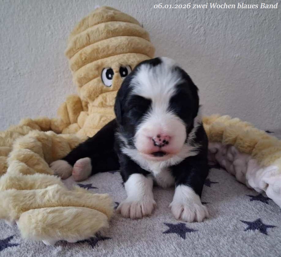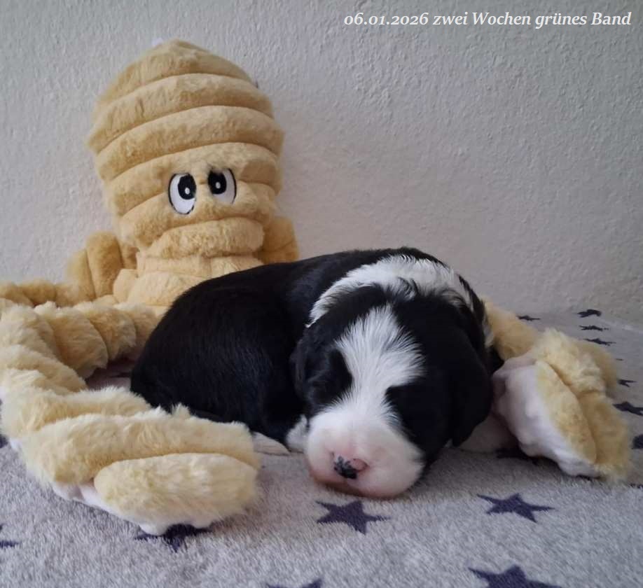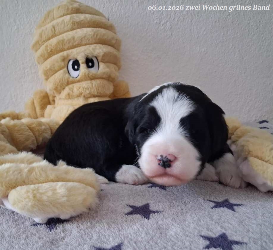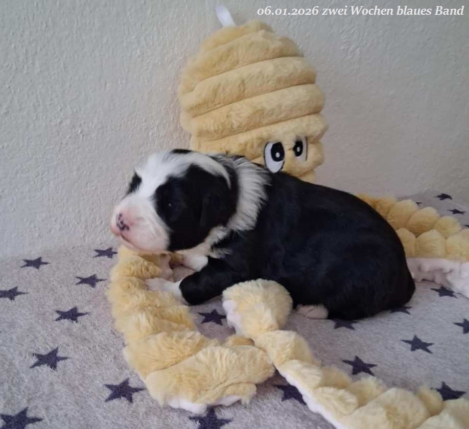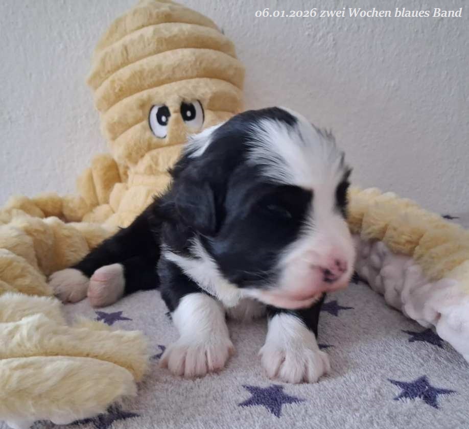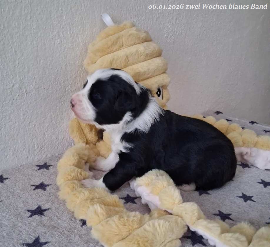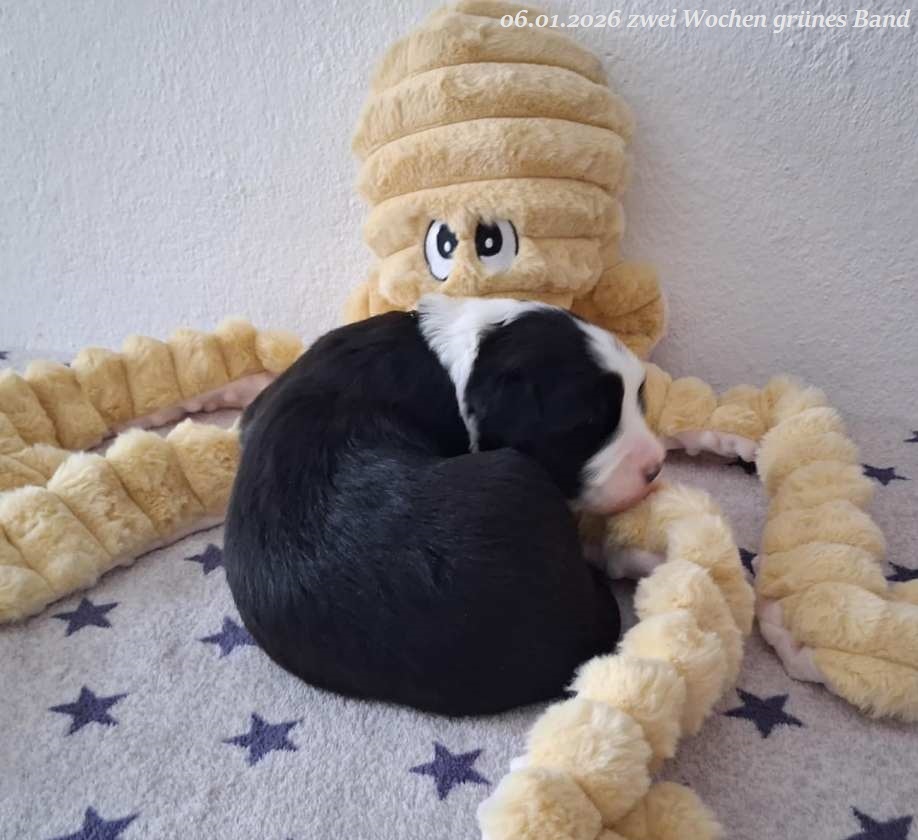 Leider gab es bei der Geburt Komplikationen und um das Leben von Mama und Welpen nicht zu gefährden habe ich mich für einen Kaiserschnitt entschieden. Leider hat es eine wunderschöne, schwarz-weiße Hündin mit 560 g nicht geschafft. Beide Rüden sind vergeben !