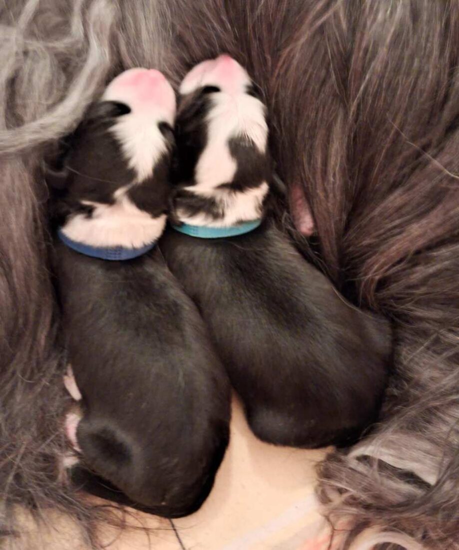 Es sind 2 schwarz-weiße Rüden mit 520g und 550g
