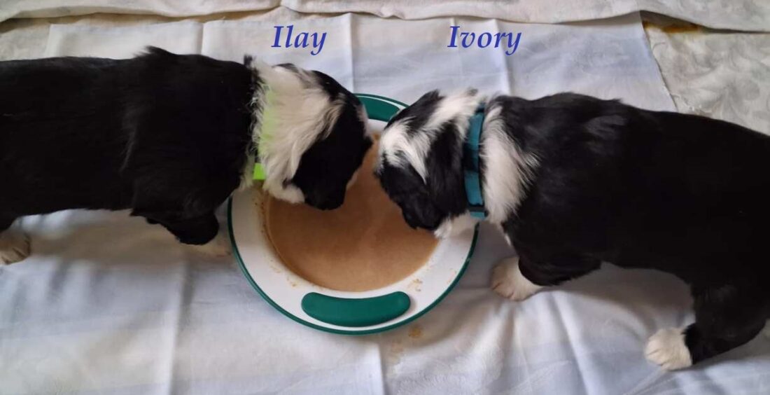 Die Bowhills I-Zwerge Ivory und Ilay sind drei Wochen alt und in dieser Woche hat sich viel ereignet. Zähnchen sind schon durchgebrochen, die Zwerglein bekommen bereits Breimahlzeit und haben das auch super angenommen. Die Wurfbox wurde entfernt und ihr Spielplatz dementsprechend erweitert. Natürlich bekommen sie auch nach wie vor die Milch von Mama Finy; sie wiegen bereits um die 2,5 kg