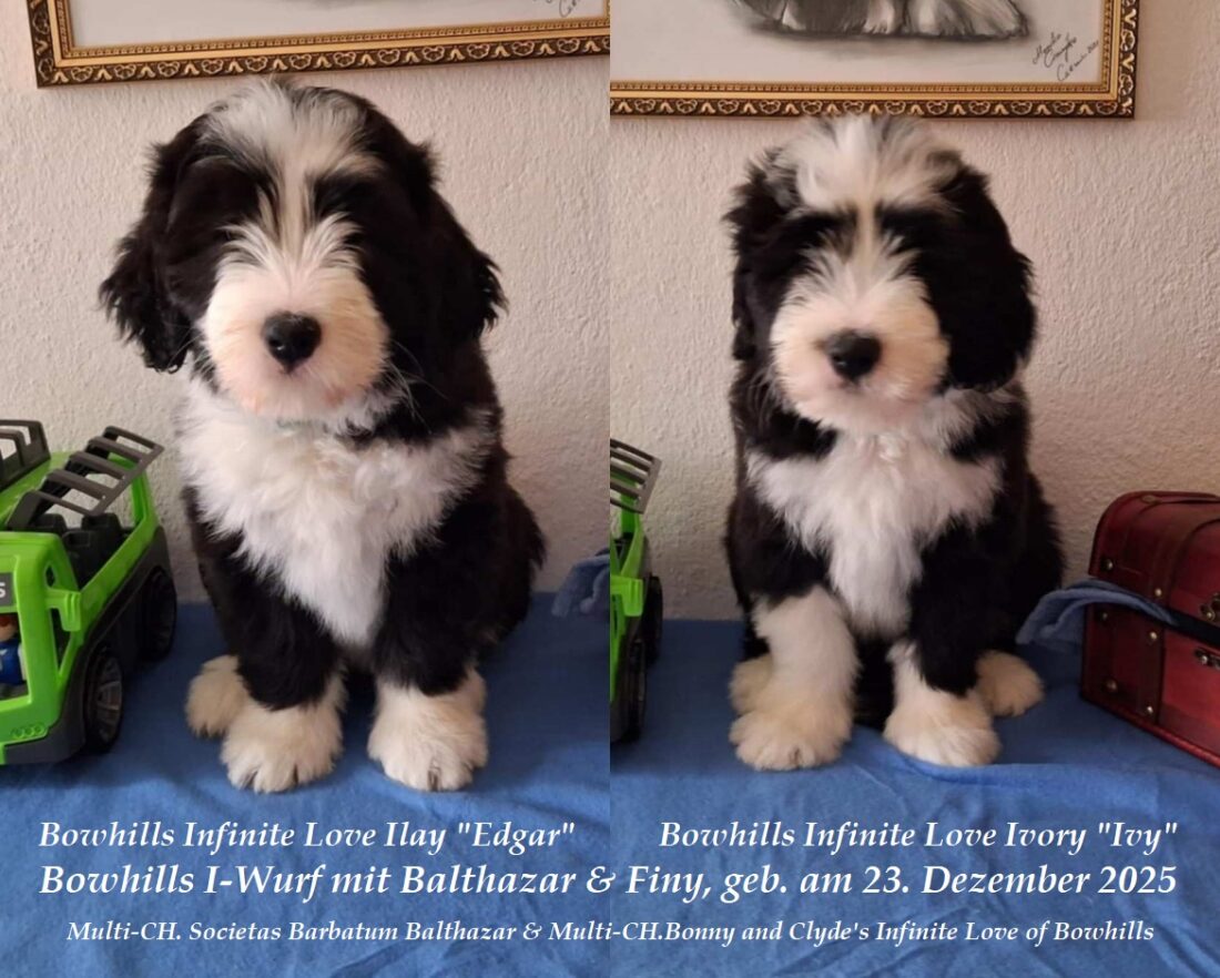 3 Rüden 2 Hündinnen, alle schwarz-weiß